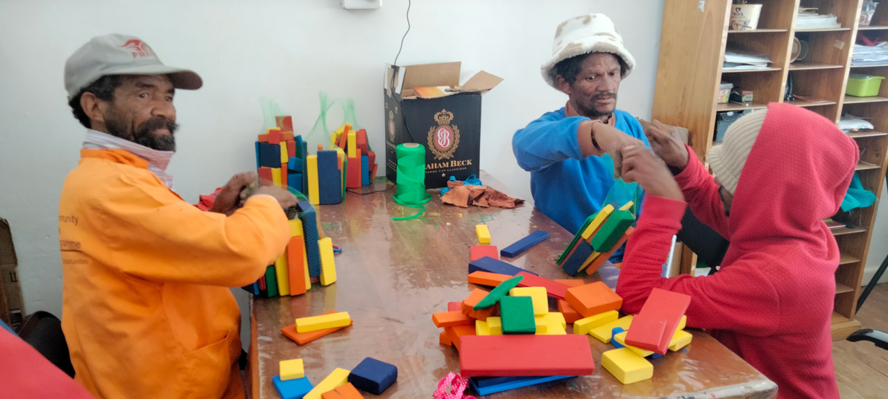 A skills and job creation initiative (handwork and life skills) that fosters creativity and entrepreneurship. Contact us to purchase unique, handmade crafts and learn more about our skills development initiative – admin@laingsburgapd.org.za / 066 564 3447.Activity Group for Adults with Intellectual Disabilities